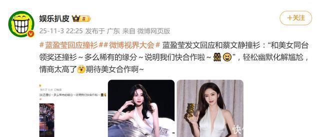 正当吃瓜群众等着看一场“谁丑谁尴尬”的暗流涌动时,蓝盈莹却主动出击,率先在微博发文化解尴尬:“和美女同台领奖还撞衫~多么稀有的缘分~说明我们快合作啦~”并大方@了蔡文静。这番高情商操作,瞬间被媒体和网友捧为“危机公关范本”。 之前网传蔡文静回复“我的正缘就是你”实为误传,其真实回应是“今晚美的很巧合”。两人一唱一和,共同将这场意外扭转为一场轻松互动,体现了当事人十足的默契与风度。 这场意外也引发了网友对活动筹备的质疑,不少人认为这暴露了造型团队未提前协调礼服的疏漏。但更多理性的声音指出,撞衫无需比较,两人用不同风格诠释同一设计,反而打破了“艳压”的单一审美,凸显了多元美的价值。 总而言之,这场围绕白色礼服的“撞衫事件”,早已超越了一场普通的红毯事故。它既是一次女明星情商与格局的公开考验,也意外成为审视内娱活动筹备与大众审美倾向的窗口。下一次红毯还会有什么惊喜?或许我们更该期待的是,这两位“缘分不浅”的演员,何时能真正合作一把。
